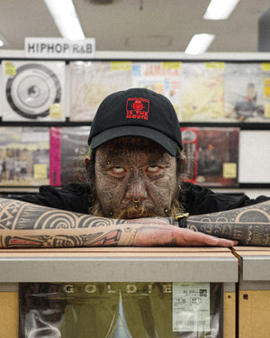 With a common background of collecting habits, being of the same generation, and culture rooted in the original experiences of both men, such as punk and hardcore, Kawamura Kosuke's signature collage work has been incorporated into the T-shirt.