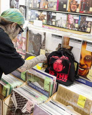そしてdiskunionをよく知る彼が本当に欲しいものを想像し、最終的に両者のアイコンやカラーリングを融合させたTシャツ、巾着BAG、CAPの3アイテムに落とし込まれました。